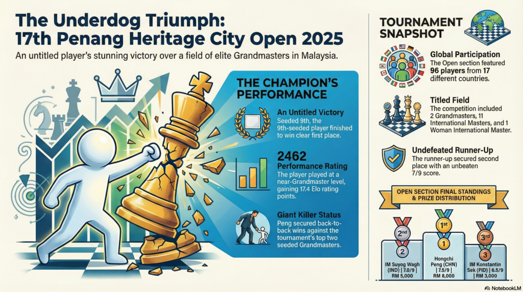 The top 10 winners of the Open section at the 17th Penang Heritage City Open 2025 are summarized below, based on the final standings: